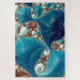 Fraktal-Kunstrochen in aquamarinen und Aqua-Blau schwimmen über einem Mosaikboden. Mathematik-basierte digitale Kunst von Susan Maxwell Schmidt.