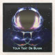 Ein blaues und lila Fraktal, das dem Helm und den Schultern eines Astronauten auf sternendem Hintergrund ähnelt. Passen Sie Ihren eigenen Text an.