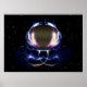 Ein blaues und lila Fraktal-Bild, das dem Helm und den Schultern eines Astronauten auf einem Sternenhintergrund ähnelt.