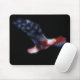 Patriotische Mousepad mit gebrochenem Bald Adler in Flug am Abend mit amerikanischem Flaggenüberlagerungen. Die Adlerfedern scheinen die Roten Weißen und Blauen US Flagge der Fahne zu sein. Das Fraktal Design lässt die Farbtöne scheinbar mit Strom leuchten.