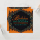 Starkes und feminines Batik-Spitzen-Design aus Fraktalen. Die orangefarbenen Erdfarben, das Aqua-Grün auf Schwarz machen dies zu einer einzigartigen Einladung - Jede Anlässe, die für afrikanische Themen, Stammesfusion, Erden-Azteken-Muster, besondere Geburtstage oder andere besondere Anlass oder Veranstaltungen geeignet sind. Alle Texte, Schriftart und Farben sind vollständig anpassbar. Wie meine Designs & Kunst?