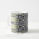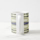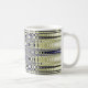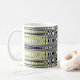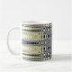 Abstrakte Fraktal-Kunst, die mich an optische Illusionen erinnert. Diese einzigartige Tasse zeigt Kreise und Wellen in Weiß, Blau und Khaki.