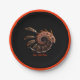Ein mehrfarbiges (rotes, gelbes und orangefarbenes), spiralförmig anmutendes Fraktal, das einem Vogel oder einem gefiederten Drachen ähnelt, auf einem dunklen Hintergrund. Fügen Sie Ihren eigenen Text hinzu.