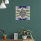 Symmetrische abstrakte Fraktal-Kunst, die mich an optische Illusionen erinnert. Dieses einzigartige Poster zeigt Kreise und Wellen in weiß, blau und khaki.