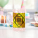 Drei Stile handgezeichnet Fraktale, darunter Dreiecke Sierpinski, apollonische Dichtungen und ein ähnlich thematisches Quadrat-Design, bilden die Schichten dieser geometrischen Mandala, überlagert auf einem hellgelben und orangefarbenen Farbverlauf. Diese Glaswaren sind auch in Steinen und in stemlosen Weinglas-Stilen erhältlich.