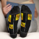 Ich finde die Socken sehr bequem, das Schwarz ist sehr hart. Sehr schöner Druck, keine fehlprägung