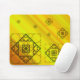 Drei Stile handgezeichnet Fraktale, darunter Siepinski-Dreiecke, apollonische Dichtungen und ein ähnlich thematisches Viereck, bilden die Schichten dieser geometrischen Mandala, die auf einem hellen gelben und orangefarbenen Farbverlauf überlagert ist.