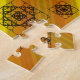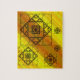 Drei Stile handgezeichnet Fraktale, darunter Siepinski-Dreiecke, apollonische Dichtungen und ein ähnlich thematisches Viereck, bilden die Schichten dieser geometrischen Mandala, die auf einem hellen gelben und orangefarbenen Farbverlauf überlagert ist.