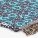 Ein faszinierendes, kompliziertes Muster, bestehend aus leuchtenden blauen, Blume- oder webähnlichen Strukturen, angeordnet in einer symmetrischen, sich wiederholenden geometrischen Formation. Die miteinander verbundenen Linien und Knoten erzeugen ein fast Fraktal-ähnliches Aussehen, das einer Fusion von Neonschaltungen und zarten Lakework ähnelt. Der dunkle Hintergrund verstärkt den Leuchteffekt, sodass das Design so aussieht, als ob es mit einem elektrischen Glühen pulsiert.