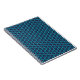 Ein faszinierendes, kompliziertes Muster, bestehend aus leuchtenden blauen, Blume- oder webähnlichen Strukturen, angeordnet in einer symmetrischen, sich wiederholenden geometrischen Formation. Die miteinander verbundenen Linien und Knoten erzeugen ein fast Fraktal-ähnliches Aussehen, das einer Fusion von Neonschaltungen und zarten Lakework ähnelt. Der dunkle Hintergrund verstärkt den Leuchteffekt, sodass das Design so aussieht, als ob es mit einem elektrischen Glühen pulsiert.