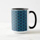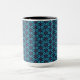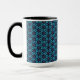 Ein faszinierendes, kompliziertes Muster, bestehend aus leuchtenden blauen, Blume- oder webähnlichen Strukturen, angeordnet in einer symmetrischen, sich wiederholenden geometrischen Formation. Die miteinander verbundenen Linien und Knoten erzeugen ein fast Fraktal-ähnliches Aussehen, das einer Fusion von Neonschaltungen und zarten Lakework ähnelt. Der dunkle Hintergrund verstärkt den Leuchteffekt, sodass das Design so aussieht, als ob es mit einem elektrischen Glühen pulsiert.