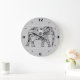 Fraktal wirbelnder Elefant - grau, schwarz und wei Große Wanduhr