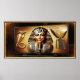 Vereinfachtes Muster, King Tutankhamun's Maske, golden, cobra, falcon, gestreifte Kopfzeilen.