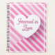 A crisp white heart stands boldly at the centre, framed within a clean border and set against a backdrop of soft pink diagonal stripes.