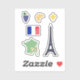 Eine Sammlung von Aufklebern der französischen Symbole: Eiffelturm, blaue, rote Flagge, Croissant, Royal Fleur de lys, Weinberge, Karte!