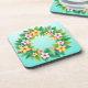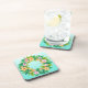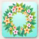 Ein anmutiges Arrangement aus orangefarbenen und rosa Frangipani-Blume, mit üppig grünen Blätter. Set vor einem beruhigenden türkisfarbenen Hintergrund, strahlt dieses Design tropischen Charme und ruhige Eleganz aus.