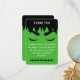 Diese Frankenstein Dankeschön-Karte zeigt stickte Narbendetails und ein gewagtes grün-schwarz Farbschema, ideal für Halloween-, Gotik- oder Monsterfeiern. Personalisieren Sie die Karte, um Ihre Dankbarkeit mit einer einzigartigen und unvergesslichen Touch auszudrücken. Ideal, um den Gästen nach Babyduschen, Geburtstagen oder thematischen Party zu danken.