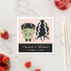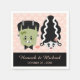 Diese rosa und schwarze Liebe zu Fright Halloween Themenpaaren Hochzeit, Paare und Brautparty, Verlobungsfeier, Probe Dinner und Jubiläumsfeier Papierserviette mit dem Monster Frankenstein und der Frankensteinbrücke auf einem Herzpolka-Punkt-Hintergrund sind muskellos als monströs und süß als spöttisch. Der Bräutigam trägt eine Bugs-Krawatte und die Braut trägt eine Blume mit einem bedruckten Rautenaussehen als solitaire in ihrem Haar. Bitte beachten Sie, dass diesem Design keine dreidimensionalen Verzierungen hinzugefügt wurden. Es ist flach gedruckt. Fügen Sie die Namen der Braut und Bräutigam oder glückliches Paar und ihr Veranstaltungsdatum hinzu. Artwork © Chrissy H. Studios, LLC. Alle Rechte vorbehalten.