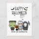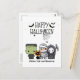 Begrüßen Sie Ihre Familie und Freunde mit dieser skurrilen, spöttischen Halloween-Grußkarte! Das Design fängt die unheimliche Magie der Saison ein. Unser Design zeigt ein niedliches kleines Panikkommando mit Frankenstein, einer Mama, einem Grimschen Sensenmann mit seiner Sichel und einer niedlichen, schwarzen Katze mit Kürbishut. Eine Gruppe beängstigender Fledermäuse fliegen über dem "glücklichen Halloween"-Gruß in einem lustigen Schriftart und spukhafte Spinnen sind damit beschäftigt, ihre Spinnennetze zu bauen. Es ist die perfekte Mischung aus Spiel und Wirbelsäule! Machen Sie es zu Ihrem Vorteil: Geben Sie Namen und Adresse, persönliche Begrüßung, wechseln Sie Schriftart, oder passen Sie die Farbe an Ihre sprichwörtliche Atmosphäre an. Stöbern Sie in unseren passenden Produkten für ein bezauberndes Party, das Ihre Träume (in der besten Weise) verfolgt! Personalisieren Sie jetzt und lass die Angst beginnen! Kontaktieren Sie uns für weitere Anpassungen vor der Bestellung. Vielen Dank, dass Sie unser Geschäft besucht haben. Das Copyright steigt in Stildesigns.