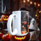 Frankie and Friends, Halloween Coffee Tasse Frankie und seine Freunde sind aus Trick-oder-Behandlung, und woll Süßigkeiten, LOTS UND VIELE VON CANDY. Quantum-Charm, bringt klassische Halloween-Figuren und KI zusammen.