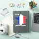 Frankreich Flaggenkarte Kontur Aufkleber in der Kontur der französischen Karte. Die Karte ist mit dem Muster und den Farben der französischen Nationalflagge verziert. Kleine Aufkleber mit dem Ländernamen sind ebenfalls enthalten. Der französische Kartenaufkleber ist das perfekte klebrige Geschenk, das man überall auf das Herz legen kann. © 2022 CountriesOfTheWorld
