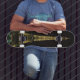 Frankreich, Paris. Eiffelturm nachts mit Skateboard