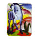 Franz Marc Blue Horse Magnet. Öl auf Leinwand aus dem Jahr 1911. Franz Marc hat einige der schönsten Tiergemälde des 20. Jahrhunderts erschaffen. Seine blauen Pferde sind einige der visuell schönsten Gemälde in seinem Katalog. Blue Horse I ist ein zauberhaftes Pferdegemälde mit einem blauen Pferd, das zwischen den Hügeln Rot, Blau und Gelb stehend ist. Ein hübsches Geschenk für Fans von Franz Marc, Blaupferde, Pferdemalereien und Expressionismus.