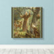 Schönes Bild von St. Francis von Assisi, Liebhaber von Tieren mit Hirsch, Wolf, Vögel, in einem Wald. Green & Gold Border