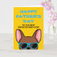 Franchies, was besser, um Ihrem Vater zu zeigen, wie viel Sie ihn diesen Vatertag mit einer personalisierten Karte nur von Ihnen Liebe! Das Design zeigt eine Cartoon-Art-Abbildung eines französischen Bulldoggen mit blauer Sonnenbrille in rot-braunen Farben mit der Aufschrift "Happy Vatertag zum besten französischen Vater aller Zeiten!", die auf der Vorderseite steht. Die Innenseite der Karte lautet "To Vater, I Liebe you more than Leckereien", aber kann geändert werden, um den Wortlaut Ihrer Wahl.