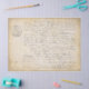 Vintages Design mit alter französischer Schrift und einem gelblich-bedrückten Hintergrund mit braunen Farbtupfern.
