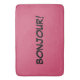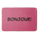 Das französische Wort, BONJOUR geschrieben in Schwarzes mit einem rosa Hintergrund.