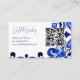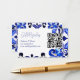 Blue Majolica mexikanische Talavera Spanisch Französisch Mittelmeer Fliesen Brautparty qr Geschenkkartei Umschließungskarten. Moderne Aquarellfarben in blauen Farben mit modernem handgeschriebenem Schriftart