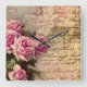 Französisch Country chic, Shabby Chic, rosa Rosen, Quadratische Wanduhr