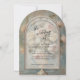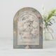 Vintage Eleganz, klassische thematische Hochzeitseinladung, die mit einem Viktorianischen alten Meistergemälde im Impressionistischen Stil eines Rosa- und Buttergelben Roses in einem blumengeschmückten Bouquet-Set in einer antiken französischen Urvase über warmen, staubblauen Chateau-Hintergrund besticht. Ein dreidimensionaler Bogen aus Gold und Elfenbeinmetall mit weichem Veludesign vervollständigt den luxuriösen zeitlosen Stil. Impasto Öl lackierte Technik mit gekrackter Textur und eine Schicht von Schrift Handschrift ephemera. Dieses Design wurde von Audrey Jeanne Roberts, einer international lizenzierten Künstlerin und Designerin, erstellt und grafisch gestaltet.