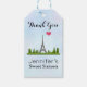 Ein 16 . Geburtstag Dankeschön an ein Geschenkschild mit einem skurrilen zeichn des Eiffelturms im Hintergrund umgeben von grünen Bäumen. Hintergrund ist ein digitales Bild von blauen Aquarellen.