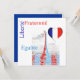Individuelle Einladungskarte mit Patriotischem Design von Französisch. Der Eiffelturm und die Prinzipien der Gleichheit, der Staatsbürgerschaft und der unveräußerlichen Rechte sind in den Farben der französischen Nationalflagge gestaltet.