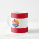Feiern Sie die Schönheit und Kultur Französisch-Polynesiens mit dieser atemberaubenden Keramik Kaffee Tasse mit der lebendigen französischen Polynesien-Fahne. Die fett roten und weißen Streifen, zusammen mit dem markanten Emblem, das das Meer, die Sonne und die traditionellen Auslösekanos darstellt, erfassen das Wesen dieses tropischen Paradieses. Diese Tasse ist perfekt für Ihren Morgenkaffee, Tee oder Getränke geeignet und bringt eine Touch polynesischen Charmes in Ihren Alltag. Diese Tasse aus französischer Polynesien ist ein ideales Geschenk für alle, die die Inseln Lieben, oder als sinnvolle Ergänzung zu Ihrer eigenen Küchensammlung. Sie ist aus langlebiger Keramik und für den Alltag und den bleibenden Genuss konzipiert. Ob stolz auf einem Regal gezeigt oder täglich genutzt, diese Tasse ist eine wunderschöne Erinnerung des französischen Polynesiens einzigartiges Erbe und die natürliche Schönheit.