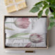 Eine Vintage, handgeschriebene Postkarte in Französisch dient als Hintergrund für dieses rosa Vintage Tulpendesign. Sie haben sogar in den Titeln und Zeilen gezeichnet. Eine ganz nette Nachricht von einem Großvater, der auf einer Reise die Liebe an seine Enkel zurückschickt. Wählen Sie Ihre Papierfarbe aus: Dieses Design sieht auch auf weiß, rosa und kraft gut aus.
