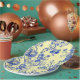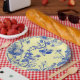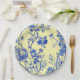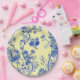Französische Teller aus Blumenpapier - die Farben sind blau und cremeweiß.
