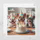 Eine lustige und süße Illustration französischer Bullhunde mit Geburtstagskuchen und Party-Hüten. Die Karte ist perfekt für französische Bulldoggen und kleine Hundefreunde, die Karte kann komplett bearbeitet und personalisiert werden.