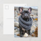Französische Bulldogge in gestrickter Hundemode Feiertagspostkarte
