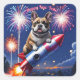 Französische Bulldogge Neujahr lustig Rakete Quadratischer Aufkleber