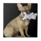 Traumhafte 6 Monate alte französische Bulldogge. Dieser kleine Welpe gibt sein Stofftier nicht mehr her.