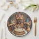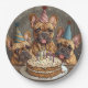 Niedliche Darstellung der französischen Bullhunde, die einen Geburtstag feiern und Party-Hüte tragen und Kuchen essen. Ideal für Liebhaber von Haustieren oder Hundeeltern.