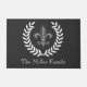 Suchen nach einem eleganten und mutigen Eingangsterrasseakzent? Schauen Sie kein weiteres! Diese elegante französische silberne Lilie und weißen Lorbeer über einer Dunkelheitsschiefergraufußmatte kennzeichnet den Ihren Familiennamen im noblen weißen Text. Grüßen Sie Sie Gäste auf eine sehr stilvolle hoch entwickelte Art. Es ist der perfekte Zusatz zum modernen französischen Dekor.