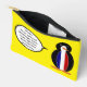 Frau Penguin erscheint in ihrer französischen Fahne auf diesem Zubehör-Beutel. Ideal für Reisen. Man kann es personalisieren, indem man Wörter in die Sprechblase des sprechenden Pinguins steckt. Das Bild wird vorne und hinten angezeigt. Sie können auch die Hintergrundfarbe anpassen. Ein tolles Geschenk für einen Reisenden.