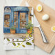 Die französischen Küchenhandtücher sind blau, creme und grün.