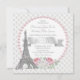 Pariser Hochzeitseinladung mit wunderschönen rosa Perlen, antiken Rosen in Rosa und Weiß und Eiffelturm auf elegantem Damast-Hintergrund. Sie können diese wunderschönen französischen Country Paris Hochzeitseinladungen ganz einfach an Ihre Veranstaltung anpassen, indem Sie einfach Ihre Details in den Schriftart Stil und den Wortlaut Ihrer Wahl. Das ist ein gedrucktes Design ohne echte Perlen.