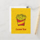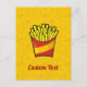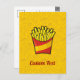 Cartoon Illustration von kleinen Pommes frites. Junk Food Kontur Icons Gelbe Muster Hintergrund. Eigener Text.
