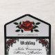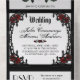 Elegantes Aussehen von Rahmen aus Eisen und dunkle rote Rosen auf einer silbernen Einladung mit einzigartigem Drehbuch. Die UAWG return hat zwei Candelabra und liefern nach Maß an Text. Ändern Sie den Text für das, was Sie brauchen. Wenn du Hilfe brauchst, melde mich einfach. Bitte verdreifachen Sie den Karo vor dem Kauf